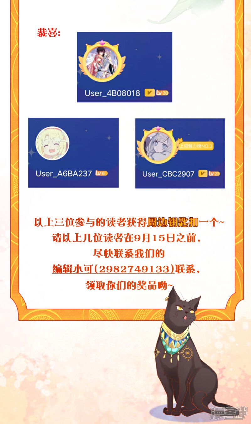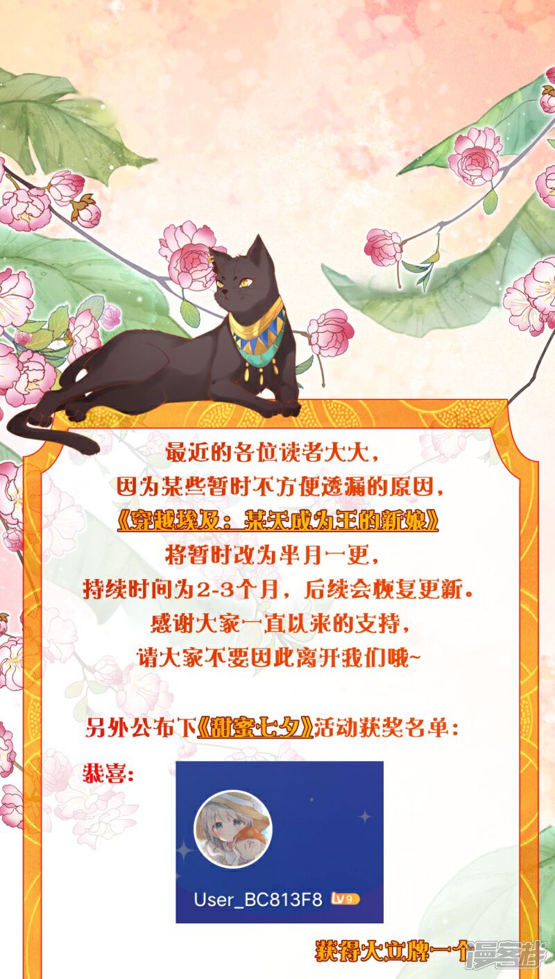 更新时间变更及七夕获奖名单