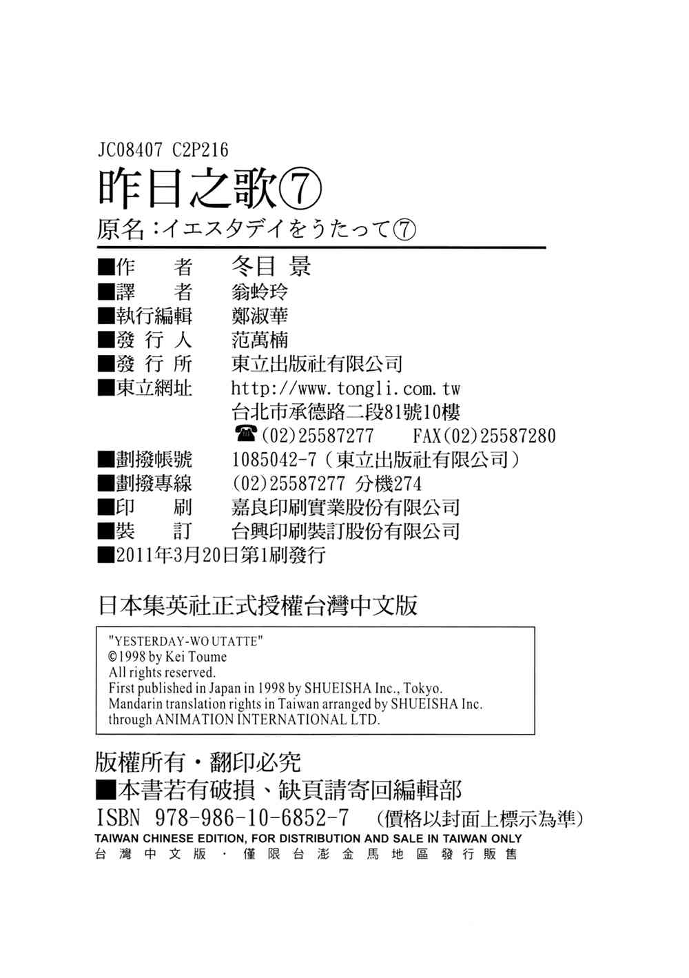《昨日之歌》目录