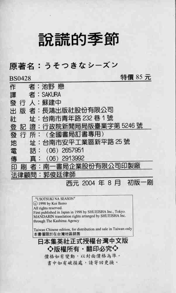 《说谎的季节》目录