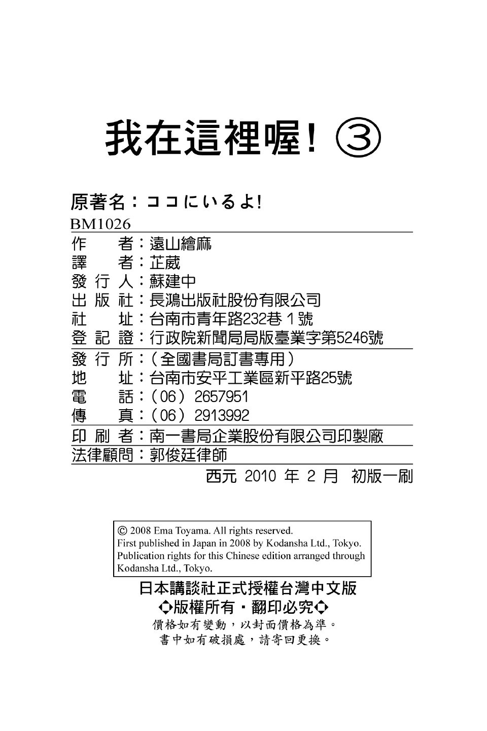 《我在这里喔!》目录
