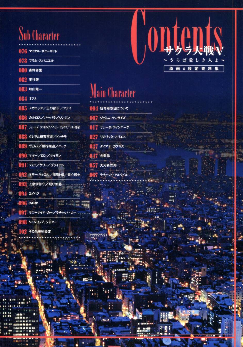 《樱花大战 原画&设定资料集》目录