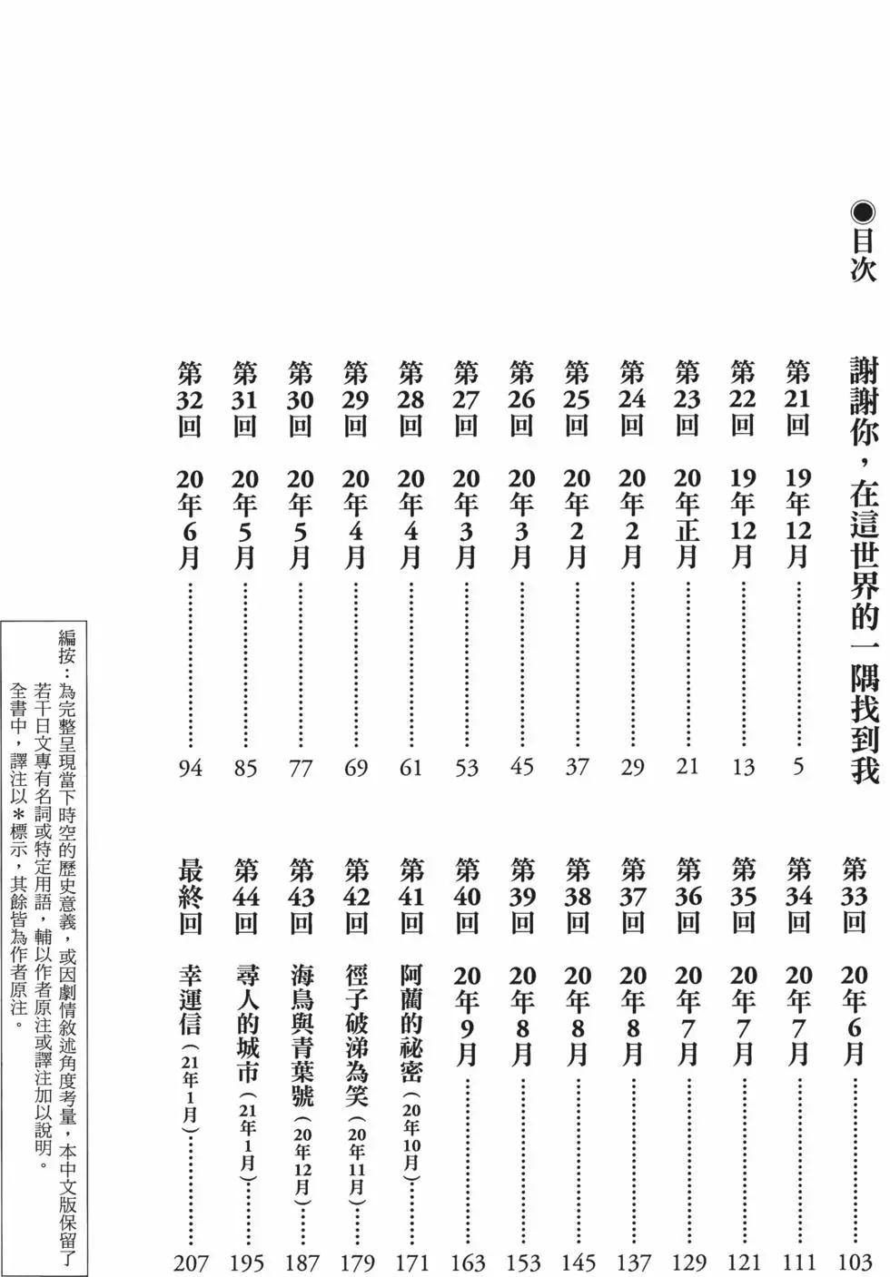 《谢谢你,在这世界的一隅找到我》目录